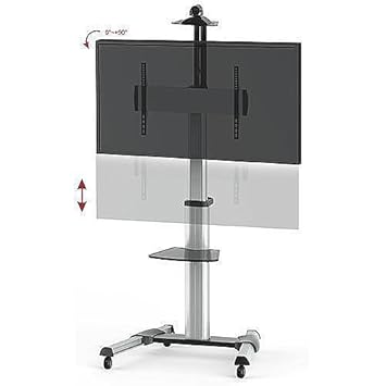 - El soporte tv ruedas se puede inclinar hacia arriba y hacia abajo 15 grados; altura ajustable de 800 mm a 1500 mm para proporcionar el ángulo de visión óptico; El soporte tv ruedas viene con un robusto estante de medios para sostener una computadora portátil, DVD o sistema de juegos; el estante también se puede ajustar de 450 mm a 750 mm.