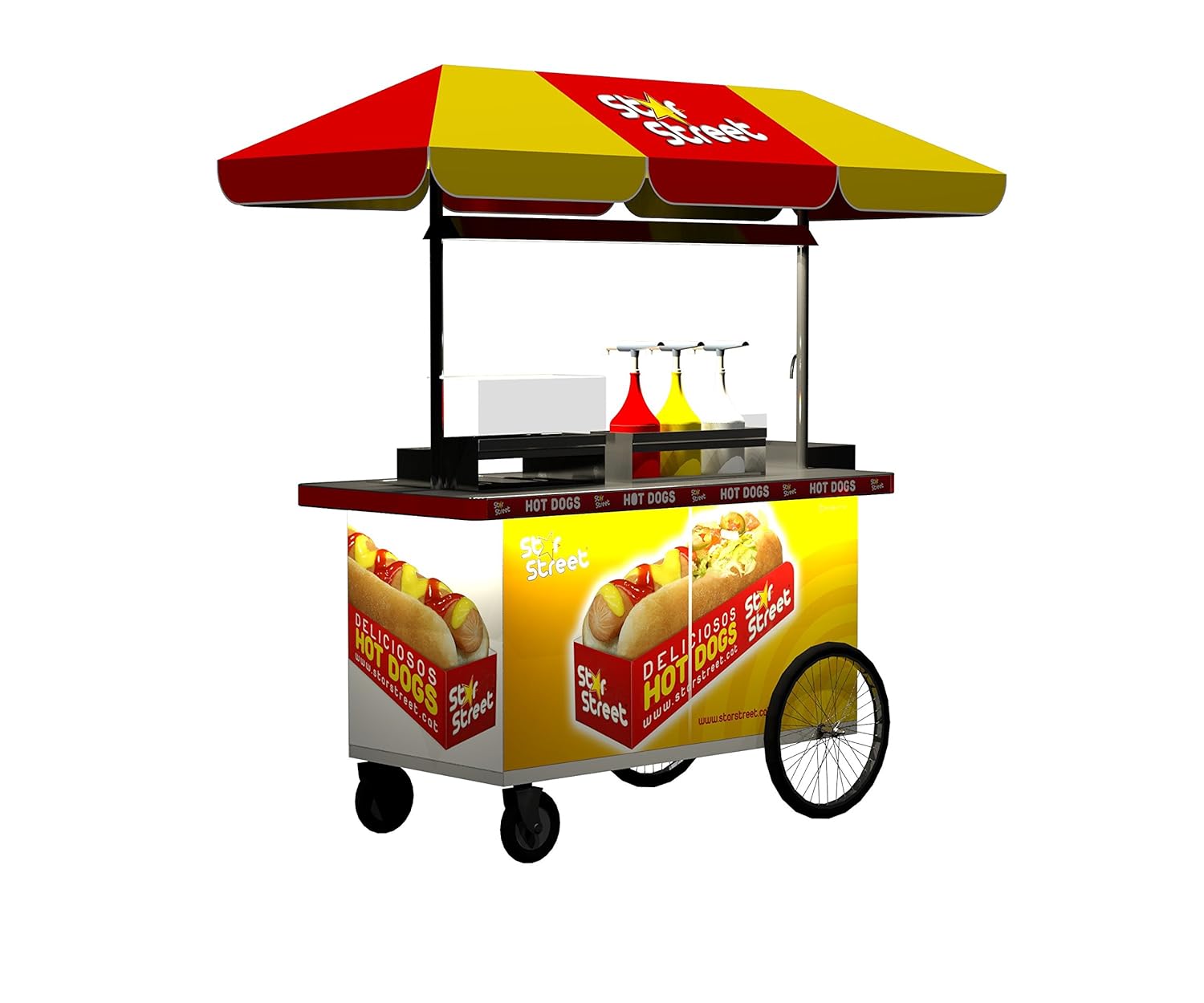- ✅ El carrito express de perritos calientes deluxe está fabricado con acero lacado de alta durabilidad y resistencia, con tiradores de aluminio, lo que lo convierte en una compra para toda la vida..